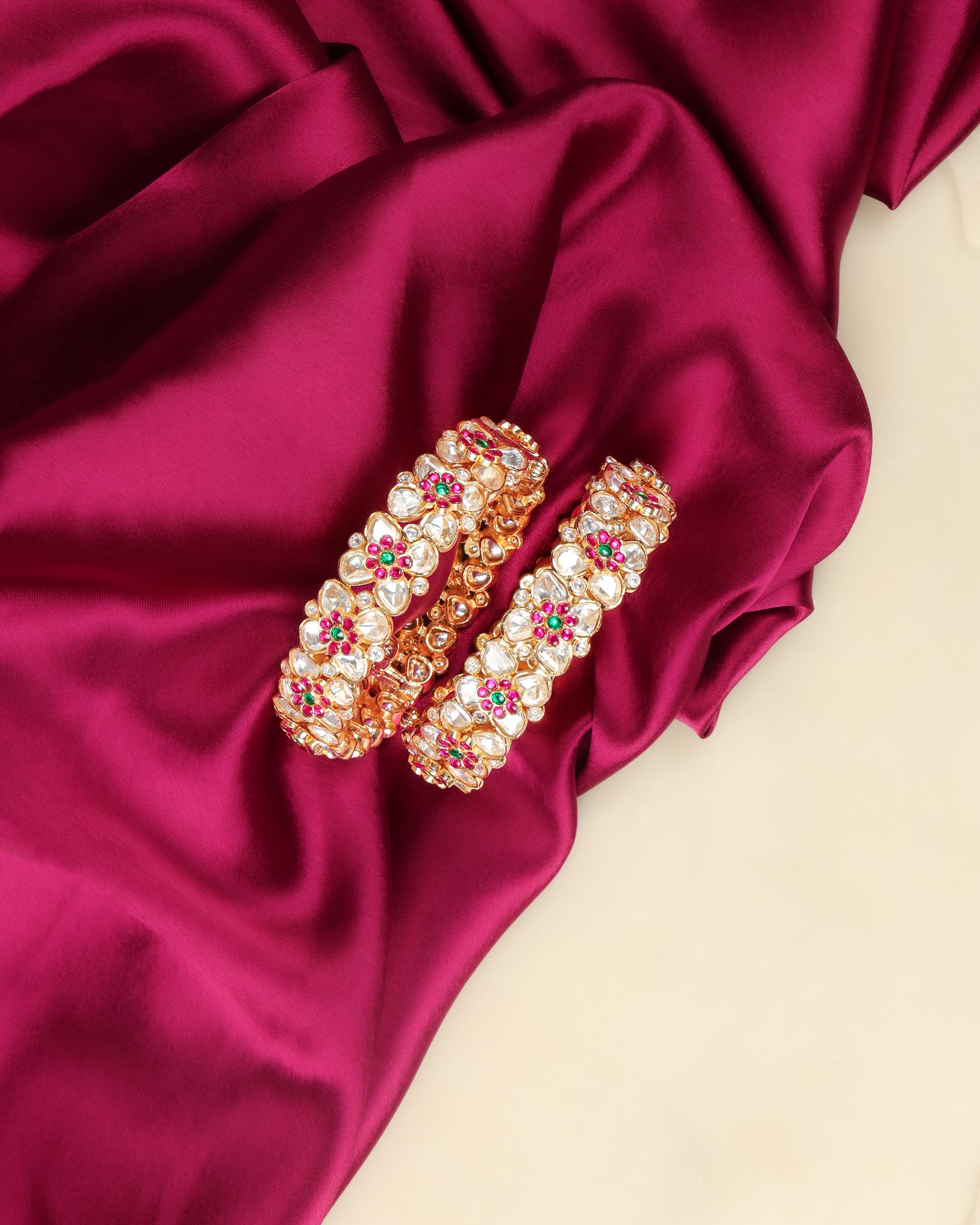 Celebrate tradition with these handcrafted Jadau Polki bangles, adorned with the brilliance of uncut Polki stones.